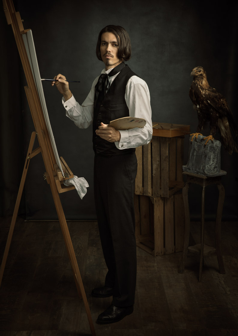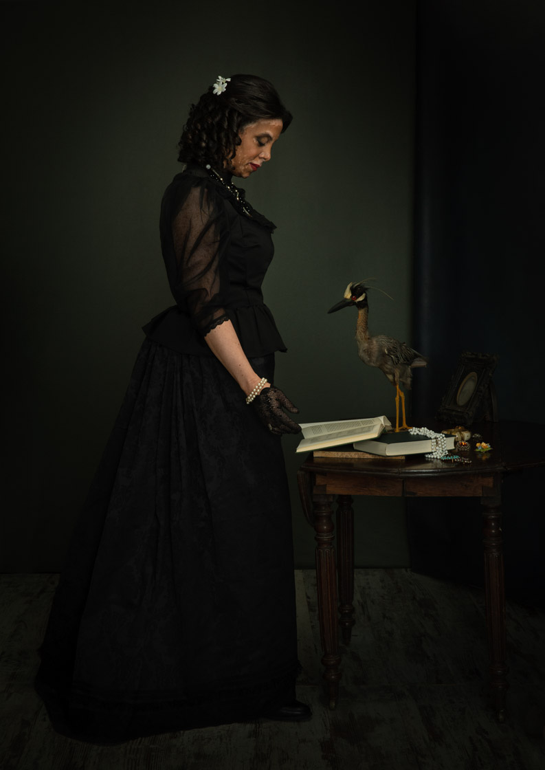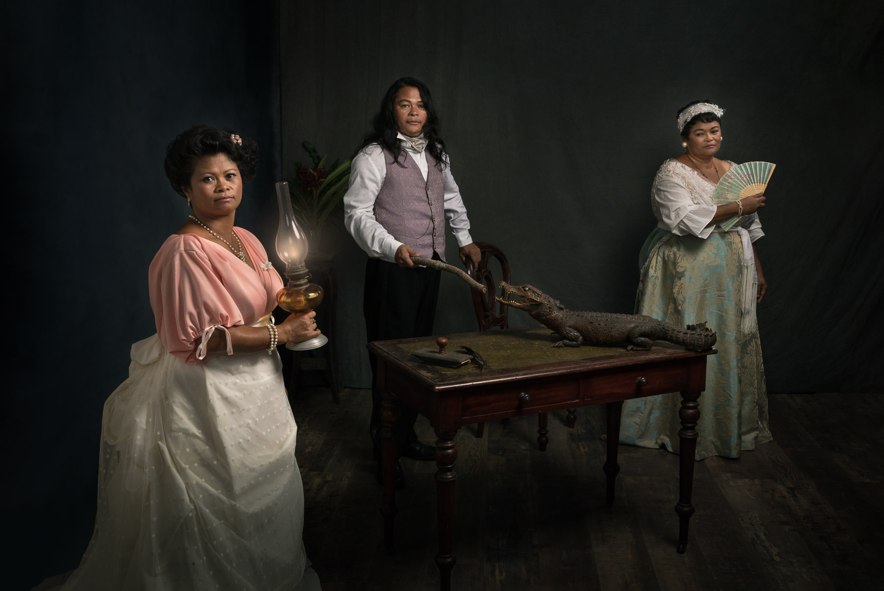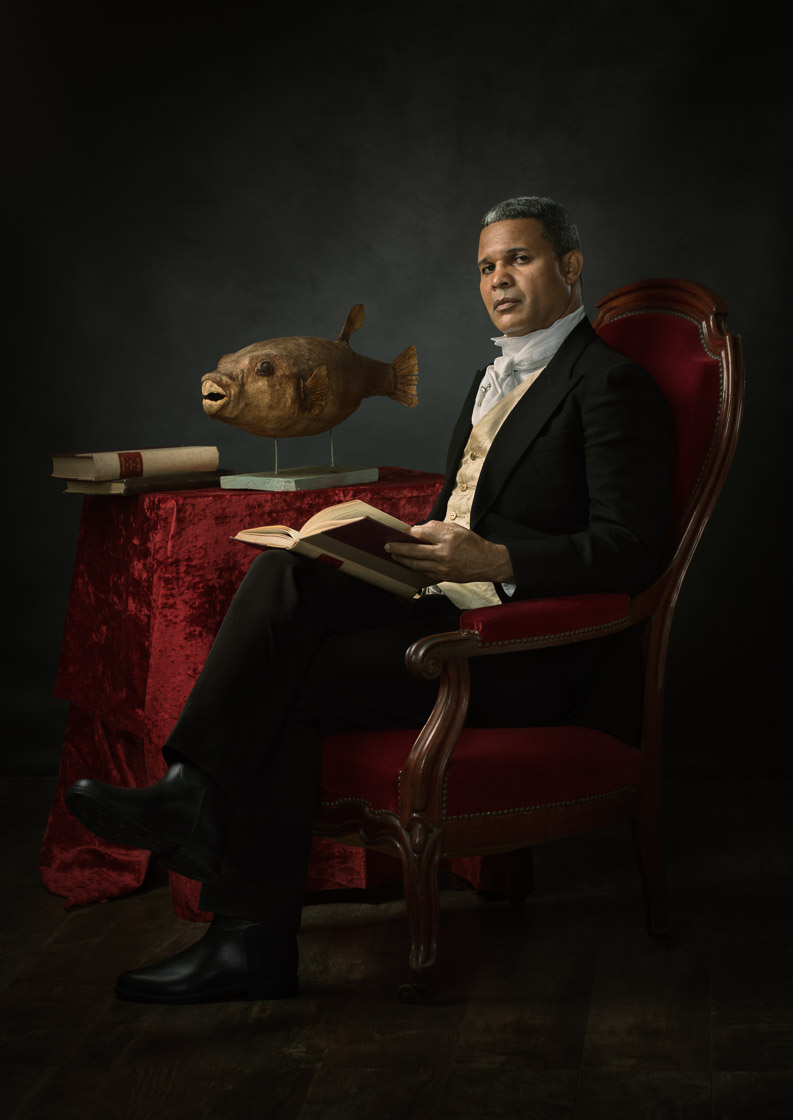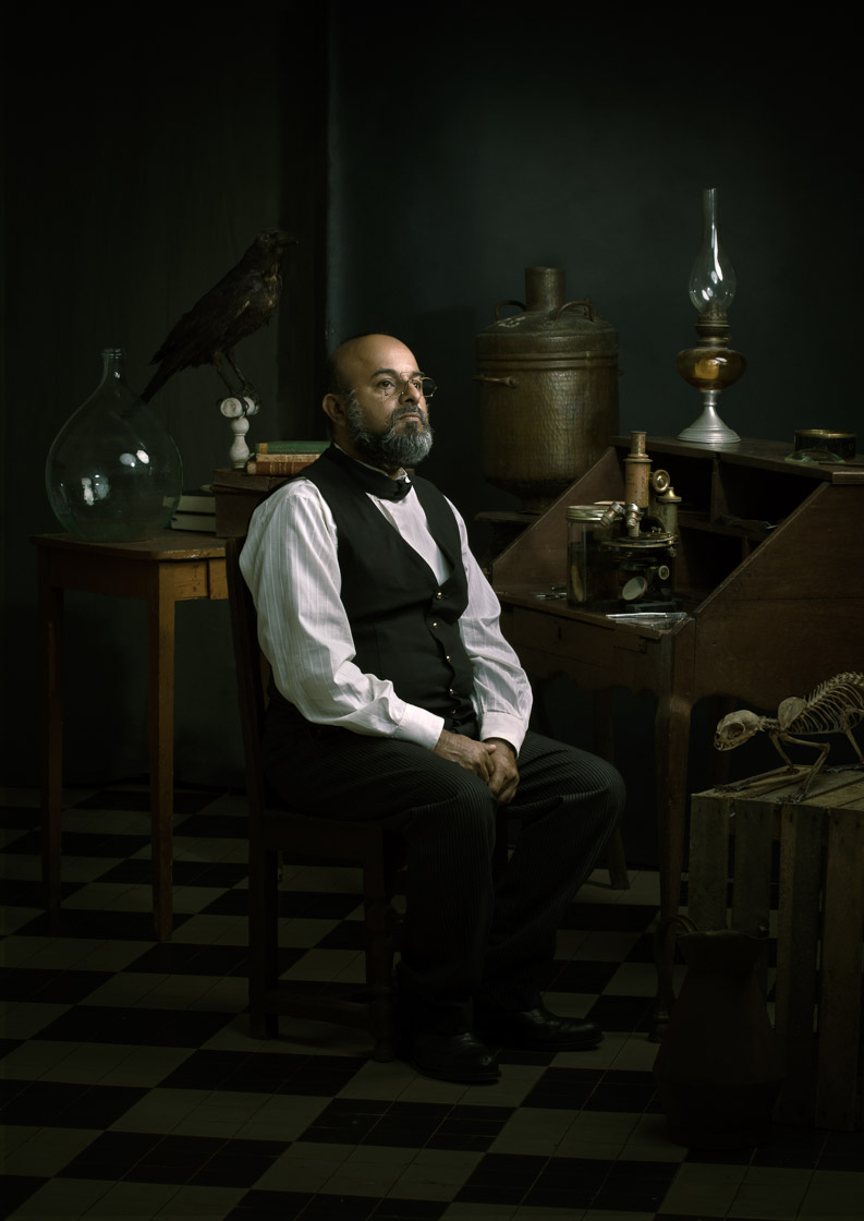 En 1854, le Muséum de St Denis est créé. Dans le style photographique et pictural de l’époque, j’ai reconstitué en prenant comme modèles l’ensemble du personnel du Muséum, des portraits de personnalités ayant contribué à la fondation de ce Muséum : conservateurs, explorateurs, … et d’autres sortis de mon imagination.